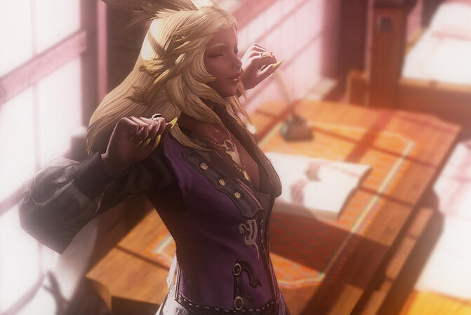 >> Could be a past lover, employer, gangster, or thaumaturge. She could owe you money, tutelage, or answers - she's made a few mistakes, often with little consideration for the consequences.✧ Her only line of continuous work is as a contractor for the Alchemist's Guild in Ul'dah. While her consistency could use some improvement, her actual work is sublime and effective.